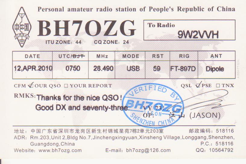 Hi Jason BH7OZG. Tnx for nice QSL. Hpe to meet you agn. 73